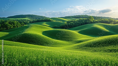 Fototapeta premium Green rolling hills stretching towards the horizon on a sunny day