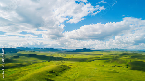 Obraz premium Green rolling hills under blue sky