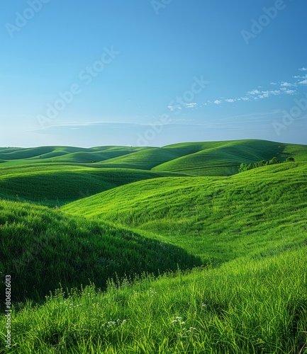 Obraz premium Green rolling hills under blue sky