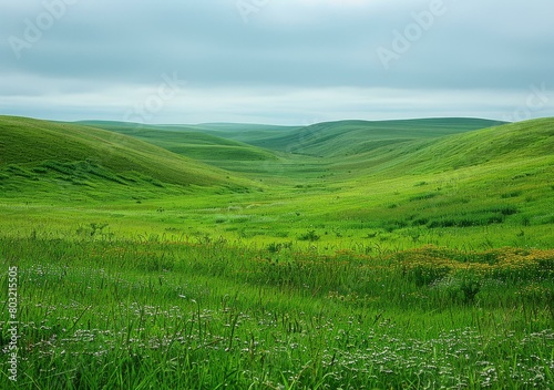 © Adobe Contributor, Obraz premium Green rolling hills under cloudy sky