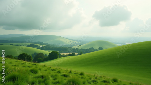 © PSingh, Obraz premium Green Rolling Hills with Cloudy Sky Copy Space
