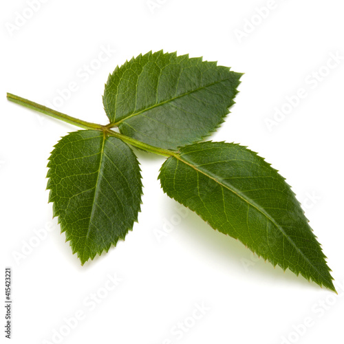 © Natika, Fototapeta premium Green rose leaf isolated on white background cutout