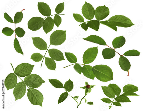 © Africa Studio, Fototapeta premium Green rose leaves isolated on white background