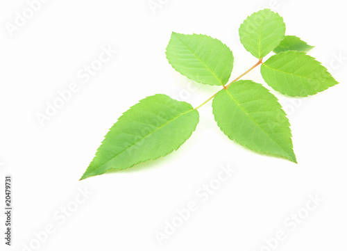 © Valerii Evlakhov, Fototapeta premium Green rose leaves on white background