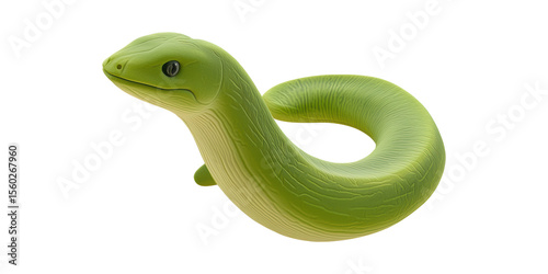 Fototapeta premium Green Rubber Snake Toy. Children'S Plaything And Educational Tool Isolated On Transparent Background