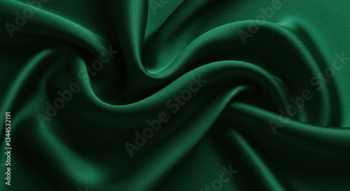 Fototapeta premium Green satin fabric with soft waves and smooth texture, close-up view