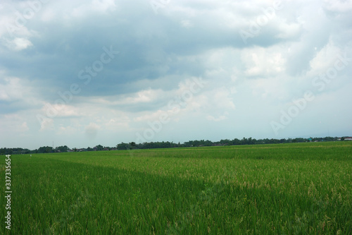 © Neilstha Firman, Fototapeta premium Green scenic landscape against cloudy sky