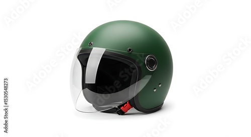 © Citra, Fototapeta premium Green scooter helmet with visor on white background
