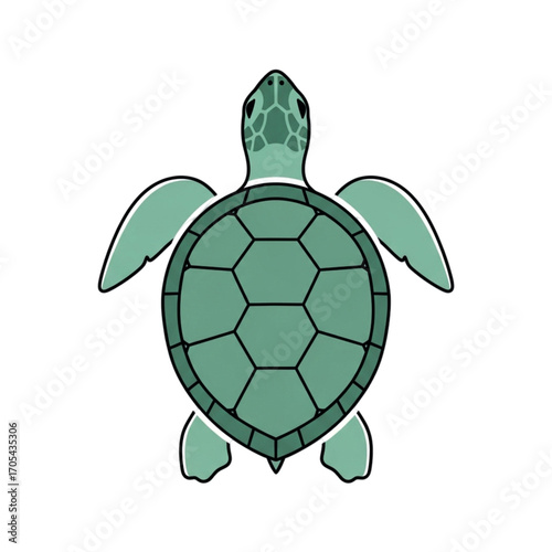 © falih, Fototapeta premium Green Sea Turtle Illustration Top View.