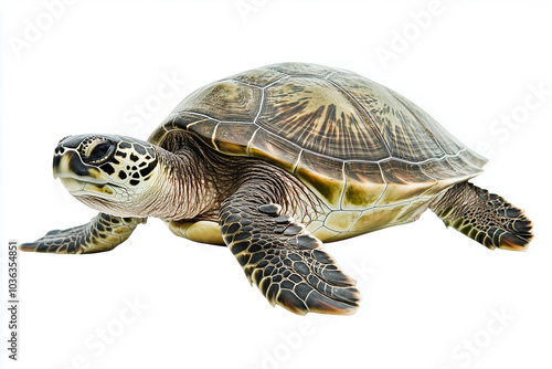 © Faisal, Obraz premium Green Sea Turtle Isolated Against a White Background - Perfect for Nature, Wildlife, and Marine Life Projects