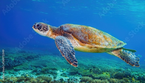 Obraz premium Green Sea Turtle swimming in clear blue water