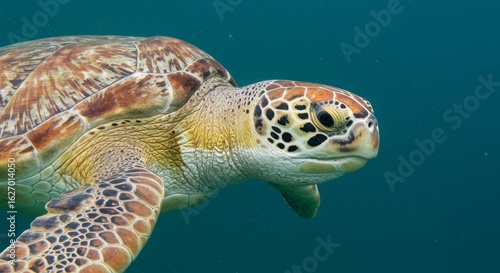 © JOKI, Fototapeta premium Green Sea Turtle Swims Gracefully Underwater
