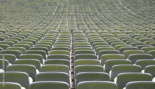 © ChiccoDodiFC, Fototapeta premium green seats in a sports facility without people