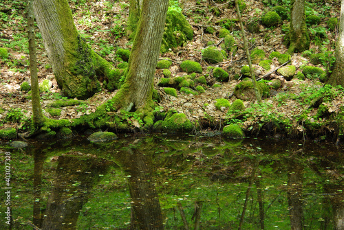 © dafna_nb, Fototapeta premium Green shady forest lake