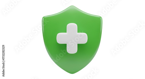 Obraz premium Green Shield with White Plus Symbol isolated on a transparent background medical