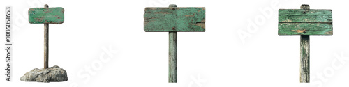 Fototapeta premium Green signpost isolated on transparent background, Set of