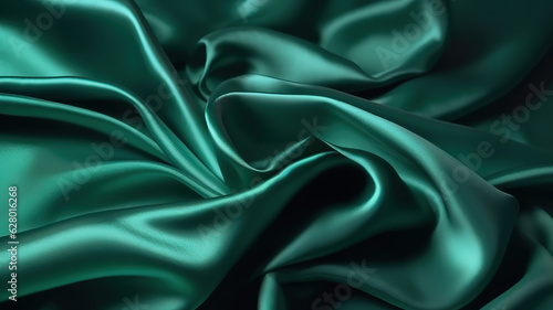 Obraz premium Green silk satin. Beautiful soft folds. Shiny fabric. Generative Ai