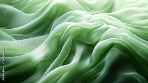 © Silu Sen, Obraz premium Green Silky Wave Digital Background, Generative AI