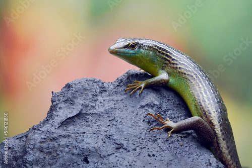 © Cavan, Fototapeta premium Green skink lizard on a tree branch