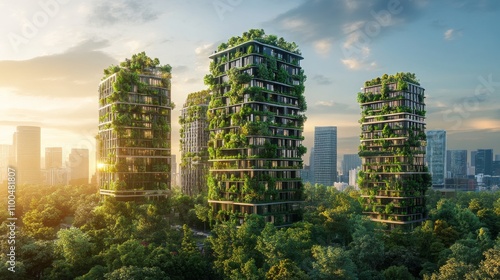 Obraz premium Green Skyscrapers Integrated Into Urban Forest Environment