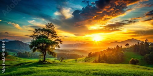 Obraz premium Green Slide Background Silhouette Photography: Nature, Landscape, Sunset,...