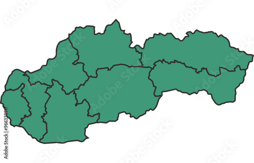 Fototapeta premium Green Slovakia simple map with states border outline vector