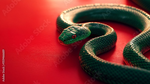 © IMAGINIAC, Obraz premium Green Snake Coiled on Red Background