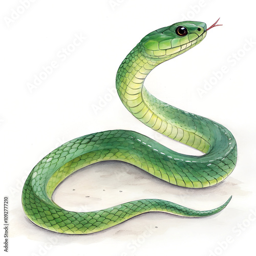 © julia_aldo, Fototapeta premium Green snake illustration with realistic details