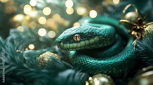© Canvas Alchemy, Fototapeta premium Green snake in decorations