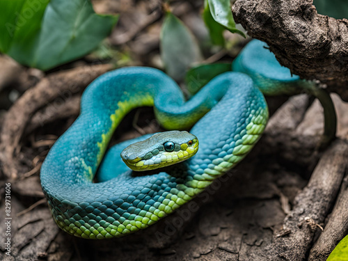 © shadab, Obraz premium green snake in the grass