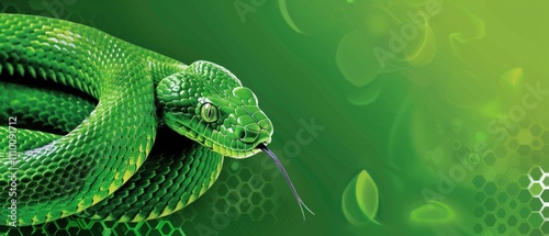 Obraz premium Green snake on green leaf