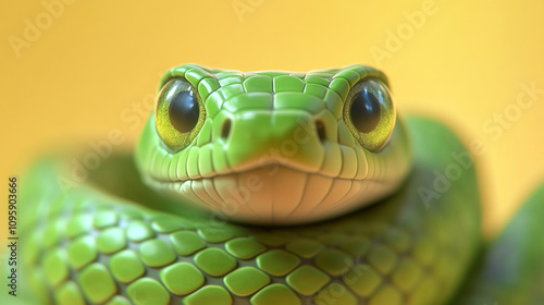© Amazing Kingdom, Obraz premium Green snake resting on a warm surface showcasing vibrant scales and unique features