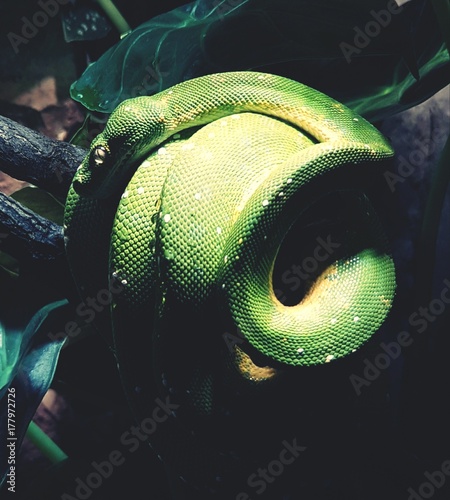 Fototapeta premium green snake / snake / green tree python / morelia viridis / baumpython