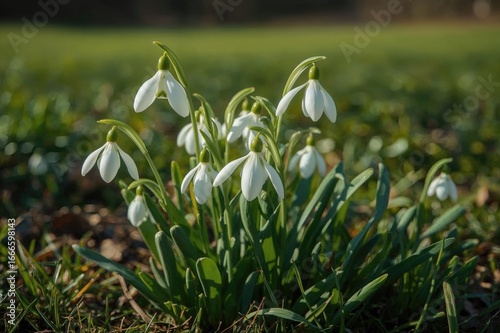 © The 2R Artificiality, Fototapeta premium Green snowdrop flowers blooming in early spring