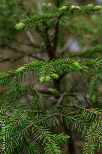 Fototapeta premium Green soft tree young sprout into the woods