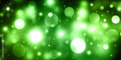 Fototapeta premium Green sparkle defocused rays lights bokeh abstract background. Web Banner,...