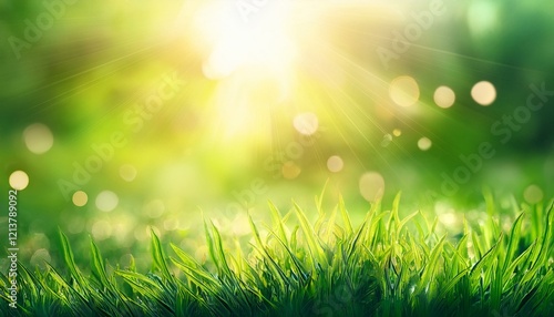 Obraz premium green spring abstract blurred background with sun and lights
