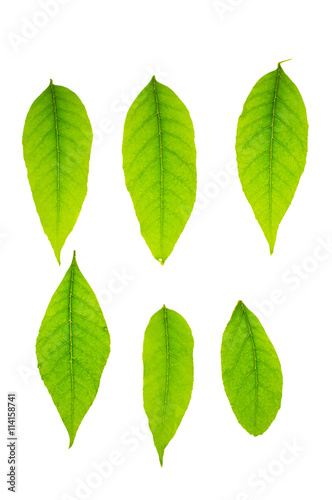 © redfox331, Fototapeta premium Green spring leaves isolated on white background