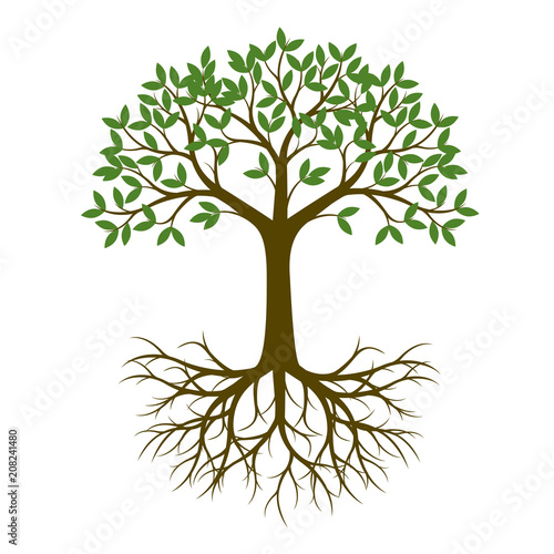 Fototapeta premium Green Spring Tree with Root. Vector Illustration.