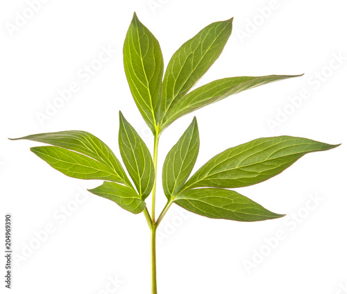 © Юлия Буракова, Obraz premium green sprout of peony bush. Isolated on white background