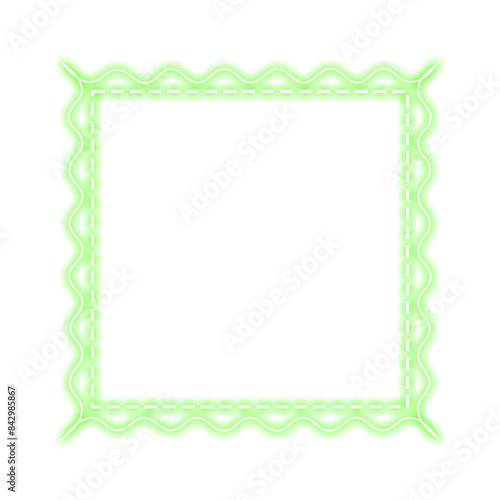 Fototapeta premium green square frame stitch and wave neon light