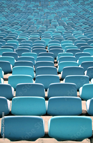 © JHMimaging, Naklejka premium Green Stadium seating in rows from behind