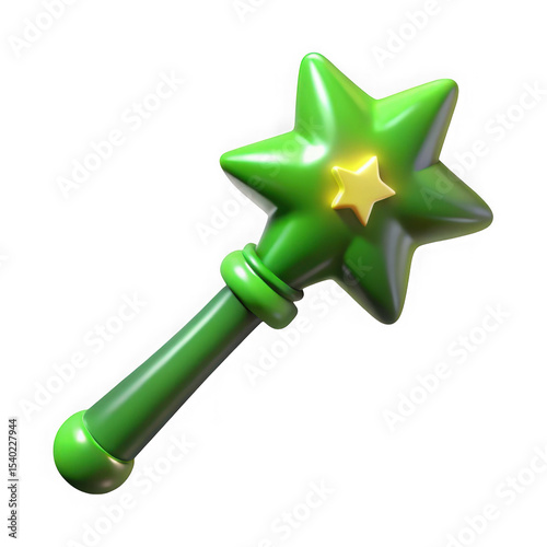 © Tahmina, Obraz premium Green star wand cartoon magic stick isolated on transparent background