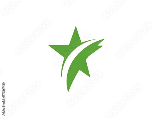 © bayane, Obraz premium Green star with upward curved white line, all on a white background