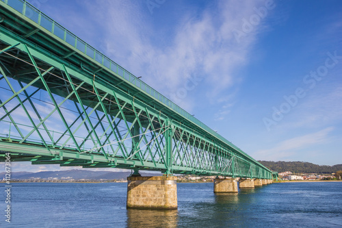 Fototapeta premium Green steel bridge in Viana do Castelo