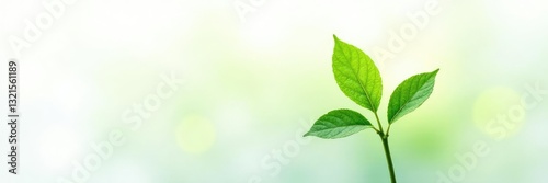 © Sutasinee, Obraz premium Green stem with leaves isolated on white background, plant, botanical, growth
