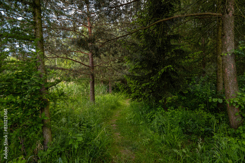 Fototapeta premium Green summer forest on a summer evening