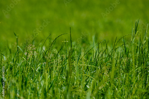 © Martins Vanags, Fototapeta premium green summer meadow abstract texture with flowers and foliage