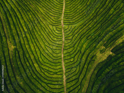 © Adrian Dascal, Fototapeta premium Green tea farm field from above
