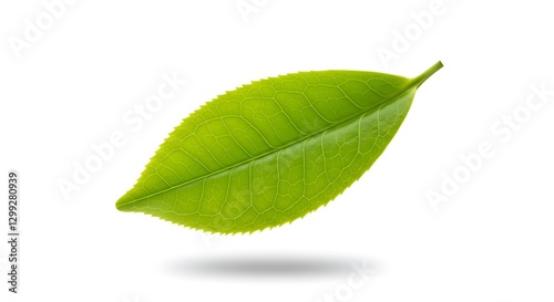 © Miftakhul, Fototapeta premium Green Tea Leaf Detailed Veins Isolated Studio Shot High Resolution